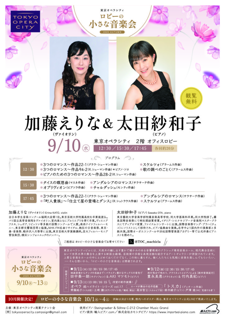 出演 加藤えりな(ヴァイオリン)、太田紗和子(ヴァイオリン)